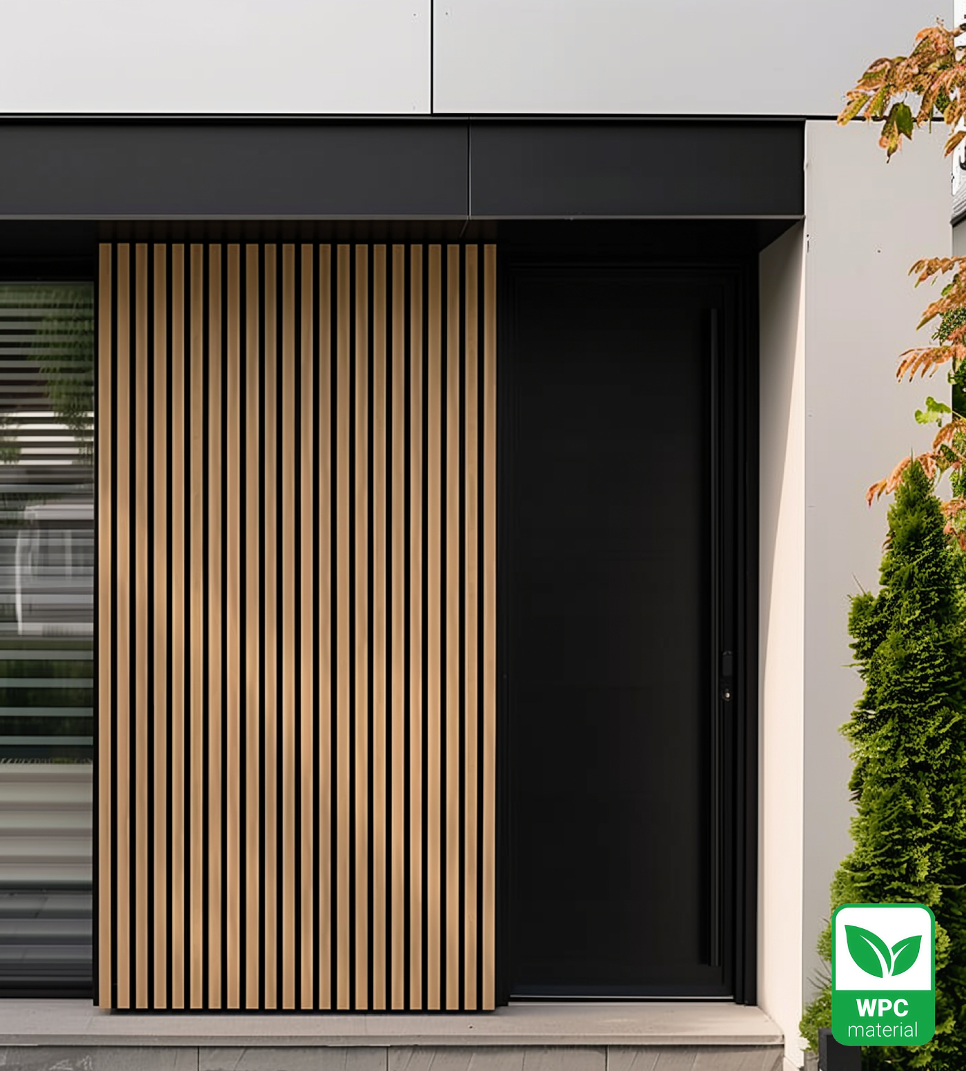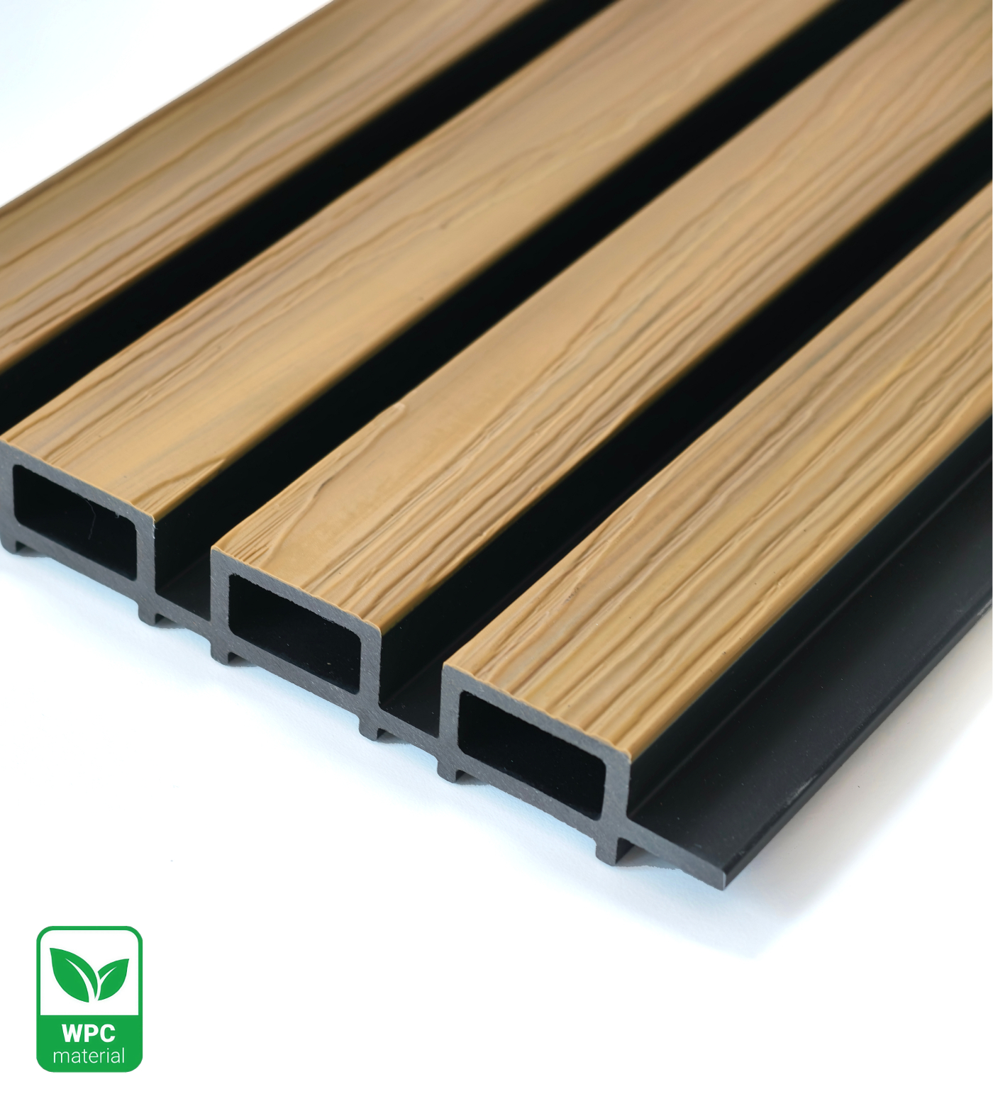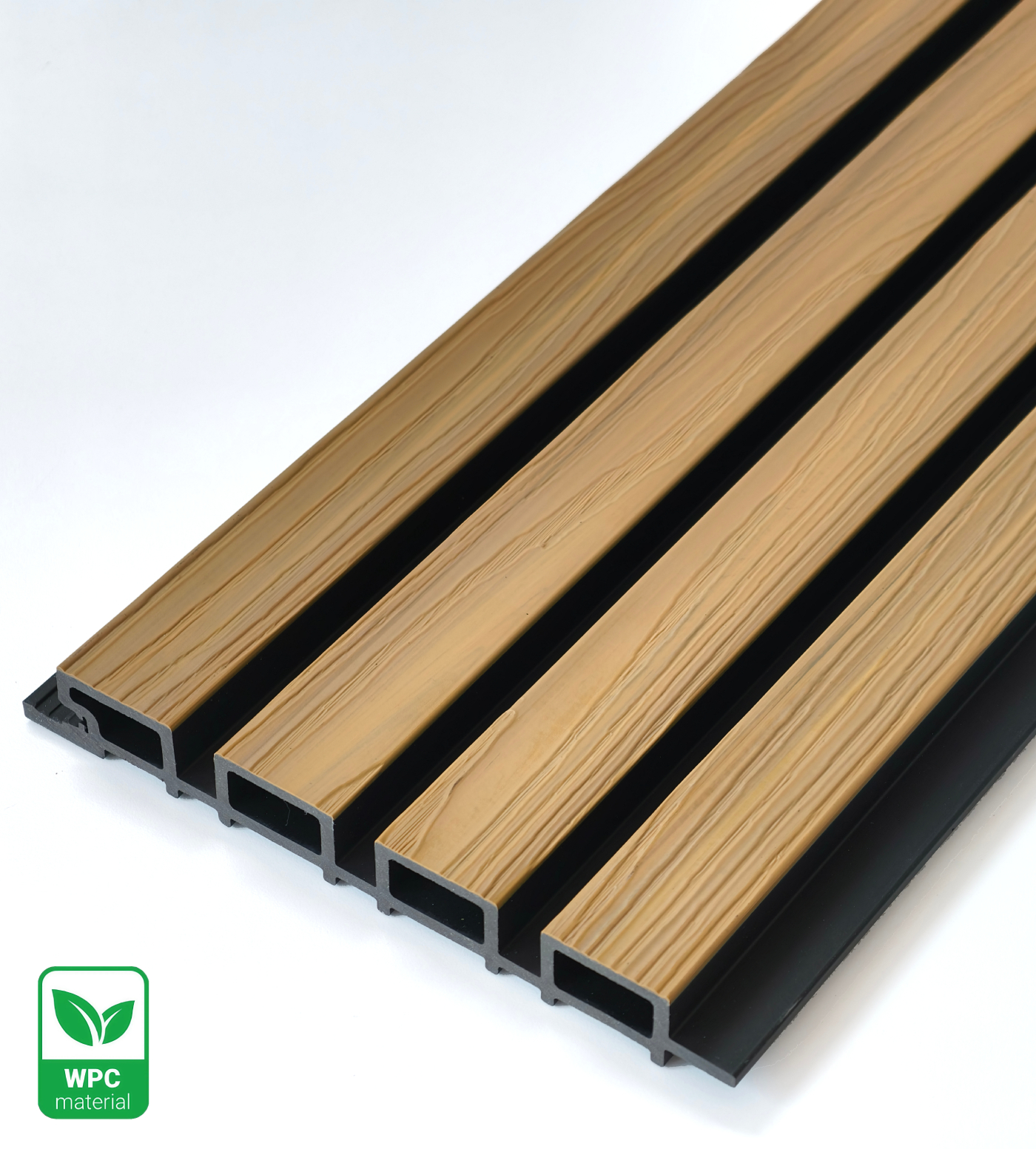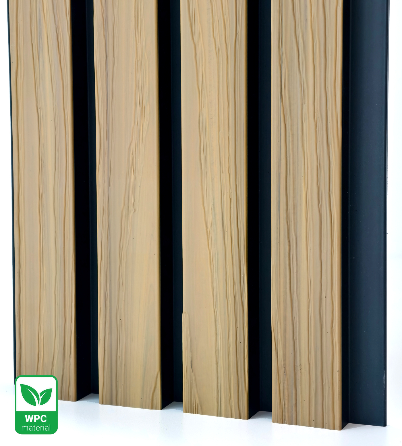 Panel elewacyjny WPC, 223x26x2900 mm, JASNY DĄB z czarnymi fugami, 6 kratek (0,64 m²)